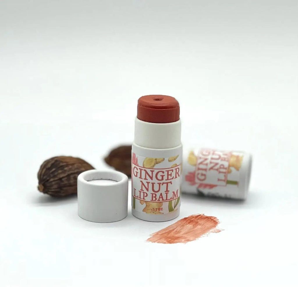 Présentation de notre baume à lèvres teinté au gingembre et aux noix avec des huiles de tamanu et d'argousier sauvages !